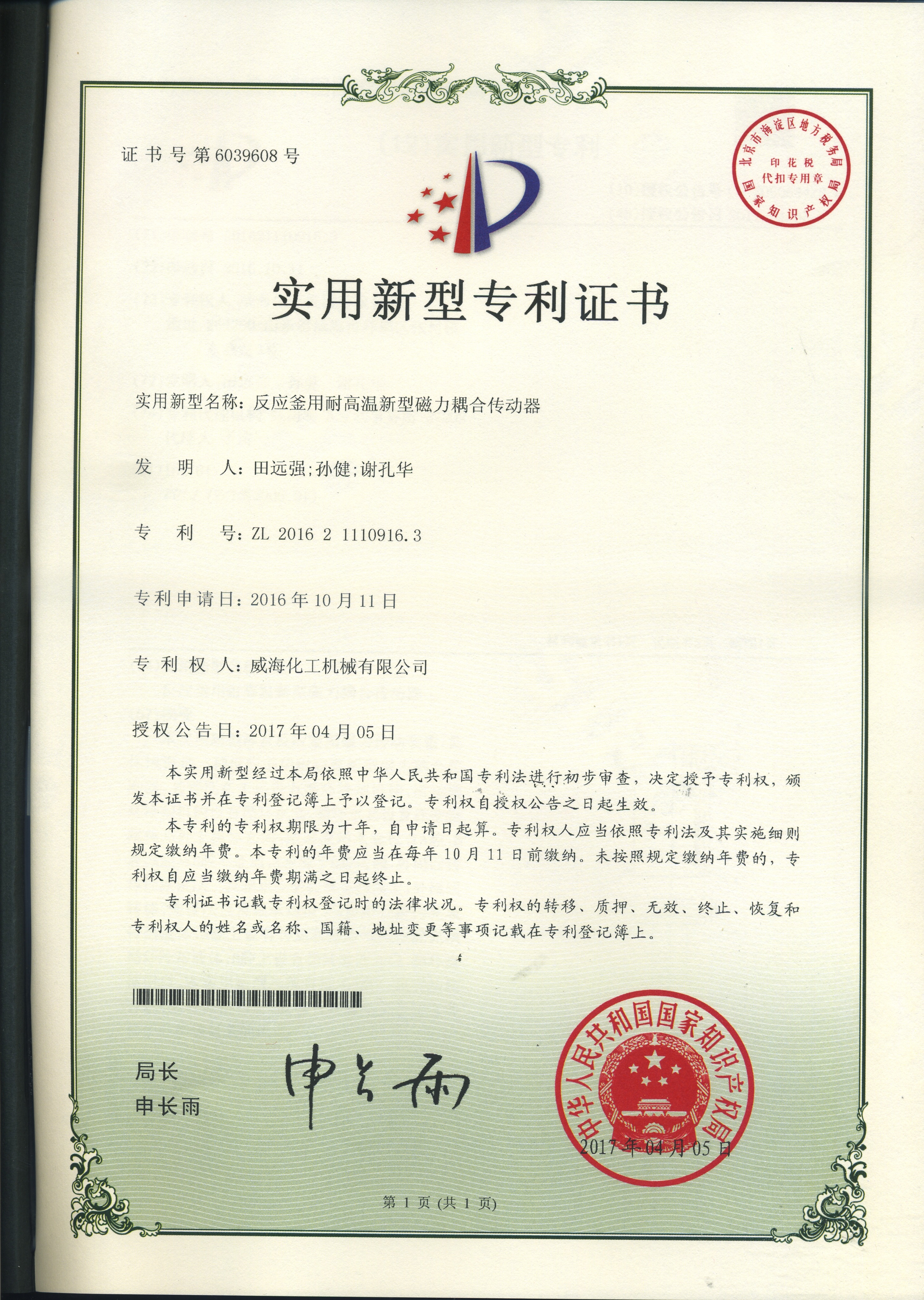公司建有磁力驅動測試試驗室、攪拌模擬試驗室、反應釜流體混合攪拌重點實驗室等,科研力量雄厚。截至2024年,公司共承擔近280項自主/合作開發任務,先后承擔省級新產品開發任務25項,其中23項產品已達到國內水平。獲得各類省、市級技術創新獎30余項;參與起草、修訂標準共8項,GB/T30098-2013實驗室用磁力驅動反應釜標準、HG/T3648-2011磁力驅動反應釜標準、GB/T29254-2012實驗室反應釜用控制器標準、NB/T47002.1~47002.4-2019壓力容器用復合板;已獲得授權專利95項,其中發明專利19項,實用新型專利69項,外觀專利7項;擁有專有技術和核心技術40余項。